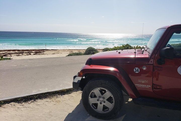 Discover the best of Cozumel and its untamed beauty on a Jeep tour through the island. Alongside a private guide, visit points of interest including several virgin beaches, the ancient town of El Cedral, and a cenote.